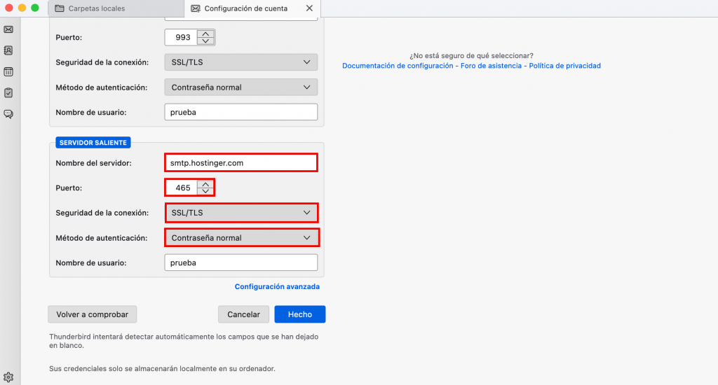 Recapitulemos las dos formas de configurar una cuenta en Thunderbird: