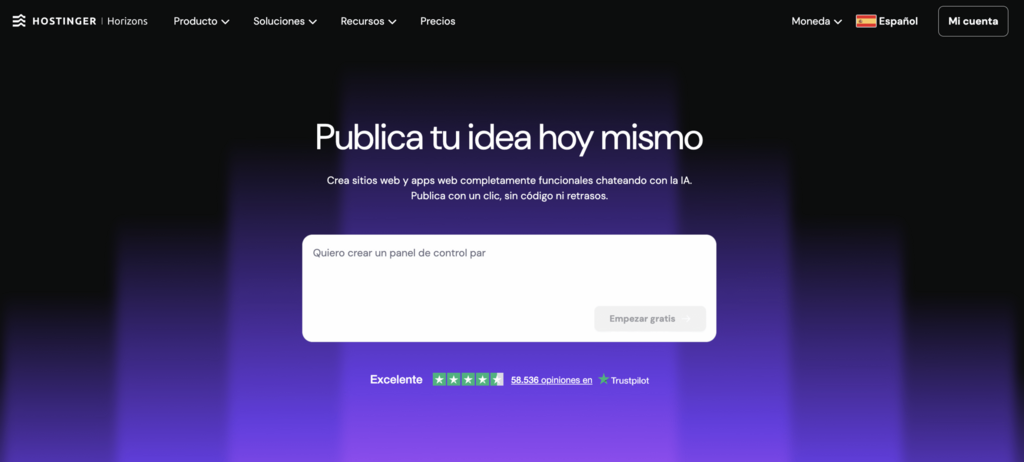Hostinger Horizons es un creador de aplicaciones sin código basado en IA que te permite crear aplicaciones o software web personalizados en cuestión de minutos.