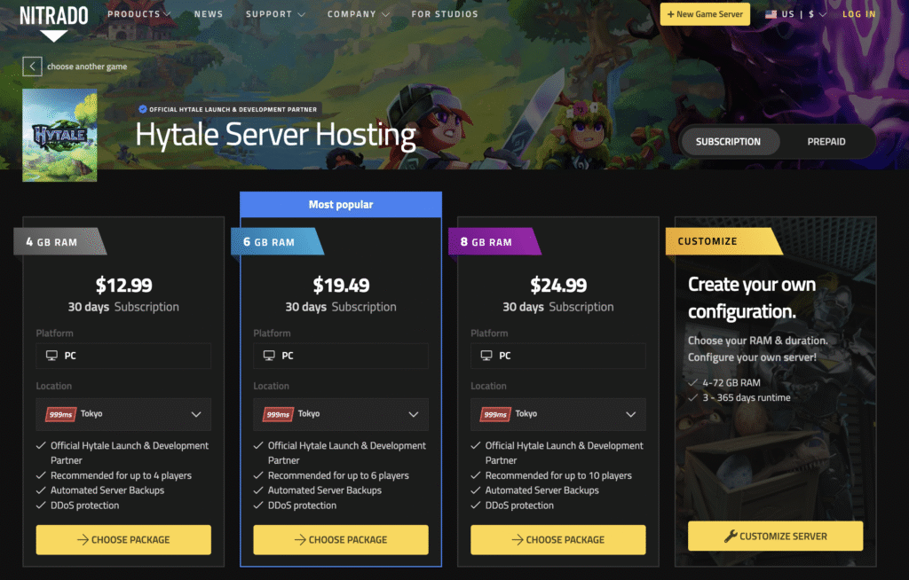Gravel Host’s Hytale packages start at $6/month for 4 GB of RAM.