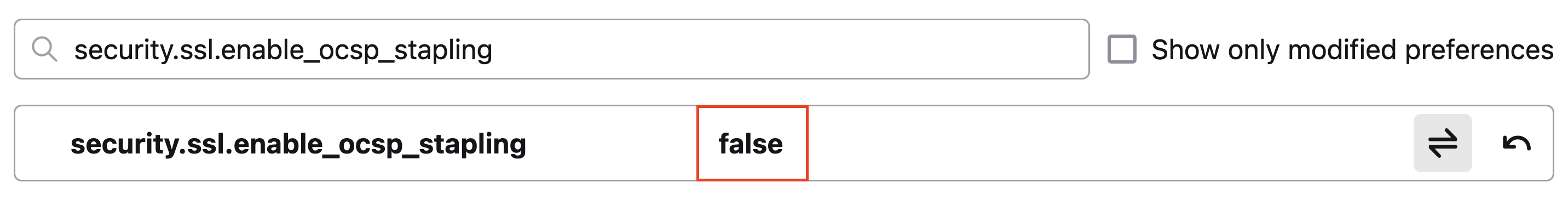 While in the Advanced Preferences page, consider also resetting the Online Certificate Status Protocol (OCSP) stapling setting. OCSP stapling helps Firefox verify SSL certificate validity more efficiently but can block legitimate access in some cases.