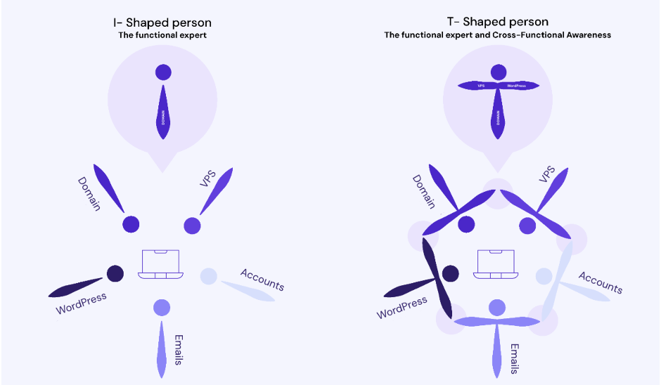 Fostering T-shaped skill sets doesn’t just benefit the organization; it also contributes to a greater sense of security and confidence for employees. Specialists who develop a wide range of skills gain more flexibility to adapt to changing circumstances, whether it’s a shift in department focus, the emergence of new technologies, or the evolving needs of our customers.