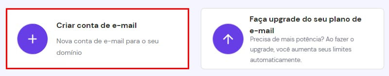 Para adicionar uma nova conta de e-mail, clique em Criar conta de e-mail :
