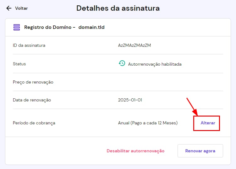 Isso é tudo! Seu próximo ciclo de cobrança será aquele que você acabou de selecionar – ele entrará em vigor a partir da data de renovação do serviço. Caso opte pela renovação manual antes dessa data, terá apenas a opção de renovar pelo mesmo período do período atual.