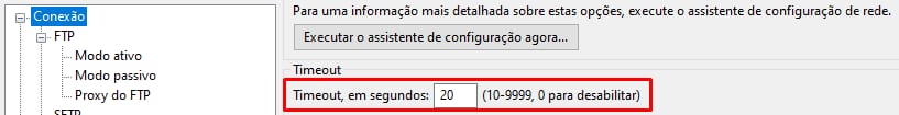 Aumente o tempo limite de conexão no cliente FTP que você está usando. No FileZilla, vá para Editar → Configurações: