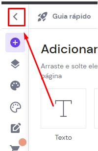 Para sair do Criador de Sites e voltar ao painel, basta clicar no botão Voltar, que fica no canto superior esquerdo da página: