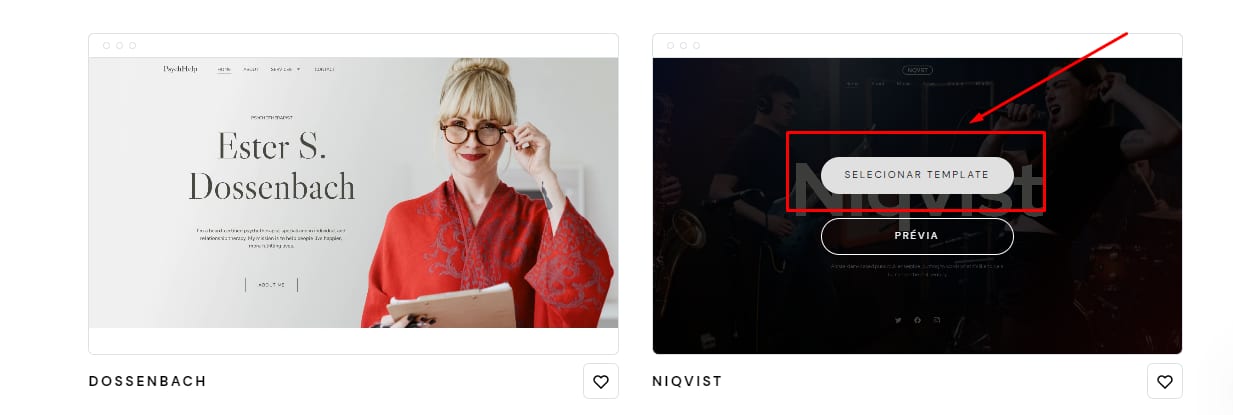 Após alguns minutos, você receberá a opção de escolher um template para seu site. Navegue pelo nosso vasto acervo de templates para escolher o que mais combina com a página que você deseja criar. Se precisar, você pode visualizar uma prévia de cada template antes de escolher o seu.