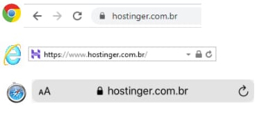 Você pode facilmente descobrir se um site está utilizando uma conexão segura ao olhar na barra de endereço – URL. Um site com certificado SSL terá um cadeado (o desenho pode mudar dependendo do navegador):