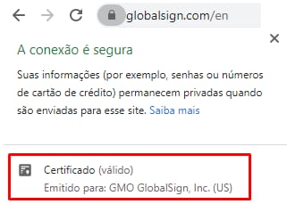 Mais detalhes sobre o certificado podem ser encontrados ao clicar no cadeado: