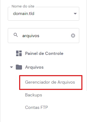 Para criar um arquivo .htaccess, tudo que você precisa fazer é ir em Sites → Gerenciar, encontre Gerenciador de Arquivos na barra lateral esquerda e clique nele: