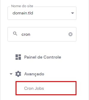 Para configurar um Cron Job, abra Sites → Gerenciar , procure por Cron Jobs na barra lateral e clique nele: