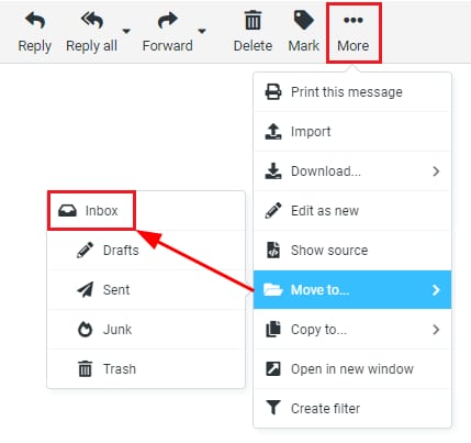 Em seguida, selecione a mensagem e clique em Mais → Mover para… → Caixa de entrada :