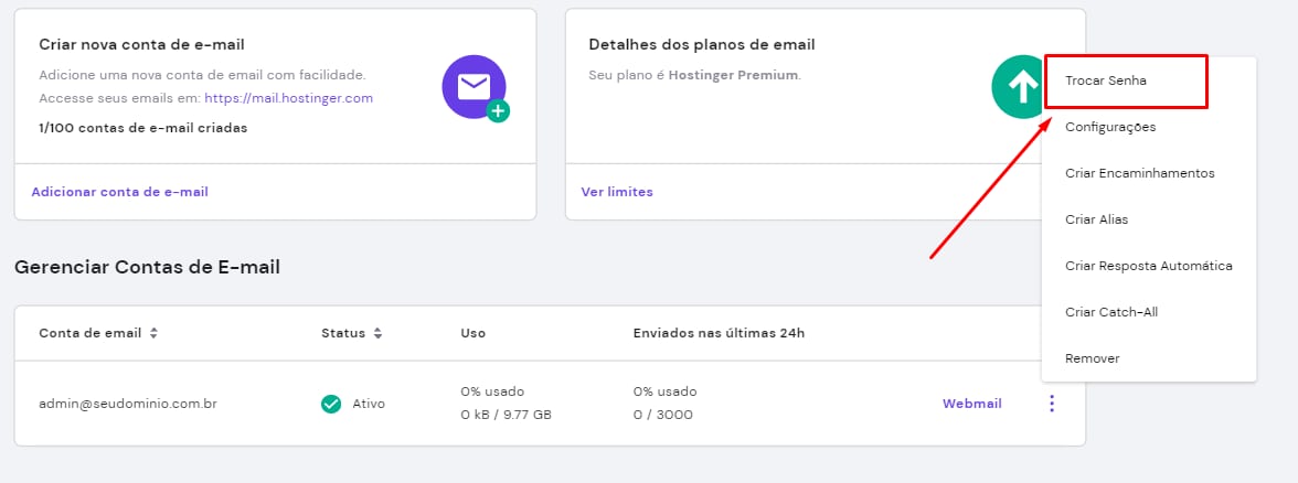 Redefinindo a senha das caixas de e-mail da Hostinger