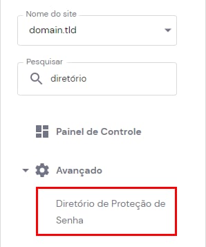 Para acessar esse recurso, abre o hPanel e vá até Sites → Gerenciar, encontre Diretório de Proteção de Senha na barra lateral esquerda e clique nele: