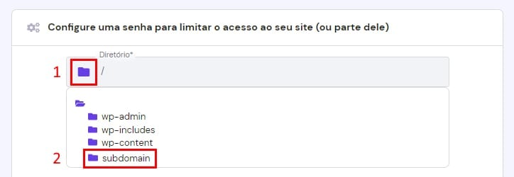 Quando estiver lá, selecione quais diretórios você quer proteger com senha: