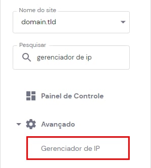 Vá para Sites → Gerenciar, procure por Gerenciador de IP na barra lateral e clique nele: