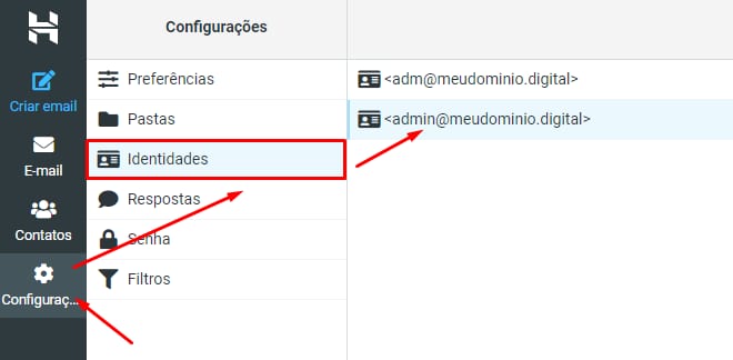 Nossa interface atualizada do Webmail utiliza identidades para configurar os e-mails enviados. Você pode personalizar a forma como seus destinatários recebem suas mensagens em apenas alguns cliques 😊