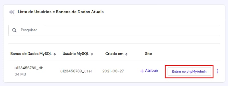Finalmente, para acessar o banco de dados, basta clicar em Entrar no phpMyAdmin.