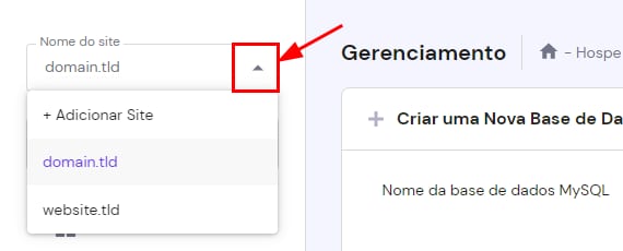 Uma vez lá, você pode escolher um site no menu suspenso à esquerda para mostrar seus bancos de dados associados:
