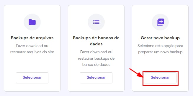 Uma vez lá, clique em Selecionar na opção Gerar novo backup: