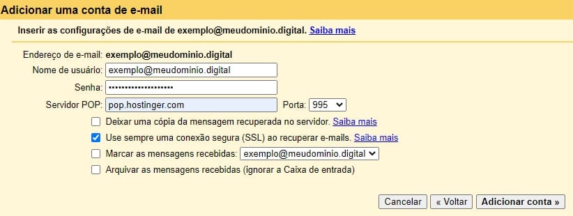 Como Configurar o E-mail da Hostinger na Versão Web do Gmail