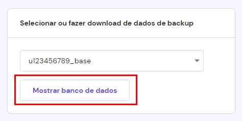 Dessa forma, você pode baixar ou restaurar o backup do banco de dados do seu site. Clique em Selecionar ao lado de Backups de banco de dados: