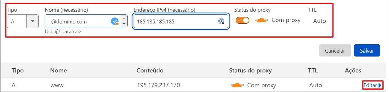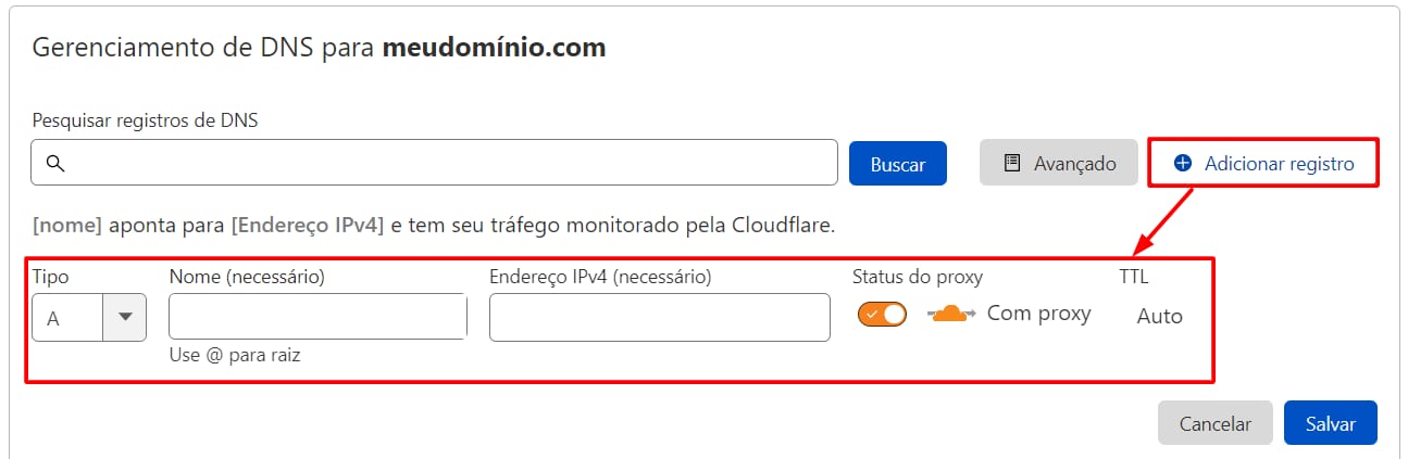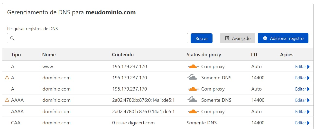 Note que alguns registros podem ser Proxy. Isso significa que sempre que você verificar esse registro no DNS checker, por exemplo – ele não exibirá seu valor real. Isso é muito útil se você não quiser que outras pessoas vejam seus registros 🔐