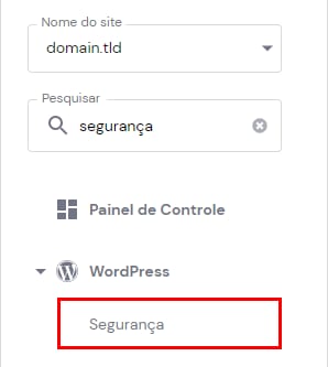 Se você tiver o painel do WordPress integrado ao seu painel, vá em Sites → Gerenciar, procure por Segurança na barra lateral e clique nele: