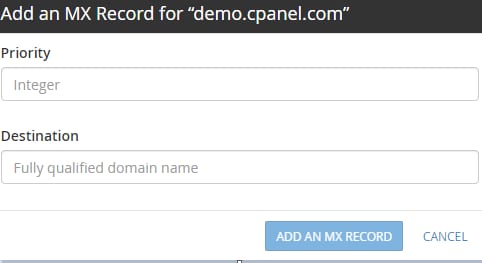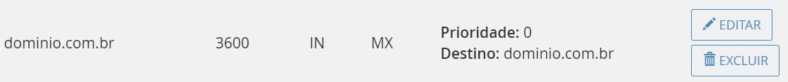 A seção Zone Editor tem estes botões para registros MX já criados: