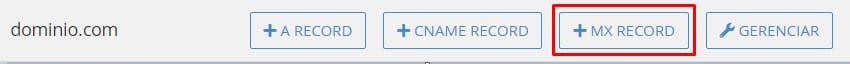 Para criar um registro MX, basta clicar no botão + MX RECORD:
