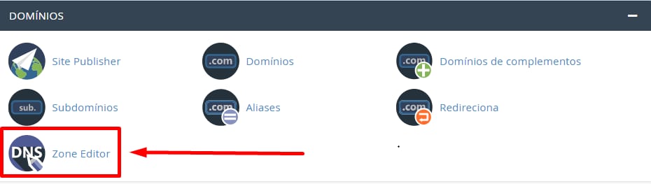 Seus registros A podem ser facilmente gerenciados com a ajuda da seção Zone Editor, que pode ser encontrada em seu painel de controle. Abra seu cPanel e vá até Domínios → Zone Editor: