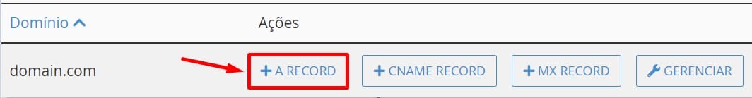Então, para criar o seu registro A, você precisa apenas clicar no botão + A RECORD: