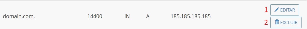 A seção Zone Editor fornece estes botões para registros A já criados: