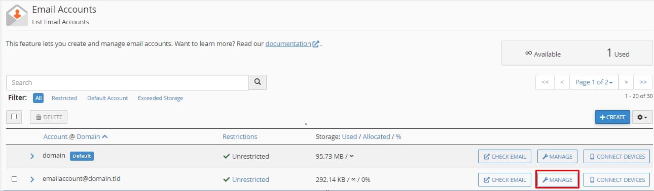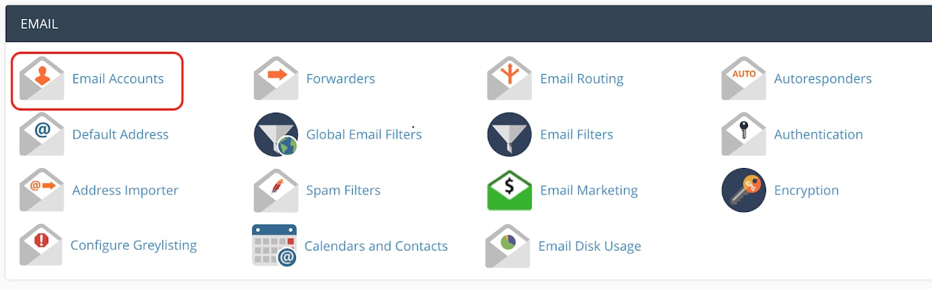 Você pode criar uma assinatura de e-mail através do nosso cliente de email, o RoundCube. Tudo que precisa fazer é entrar em seu cPanel, localizar a seção de Email e entrar no menu de contas de e-mail, o Email Accounts: