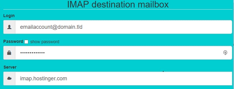 Na direita, coloque os detalhes do email de destino. Se for o seu email da Hostinger, o nome do servidor IMAP será imap.hostinger.com. Certifique-se de criar a conta de email pelo seu painel antes de fazer essa migração.
