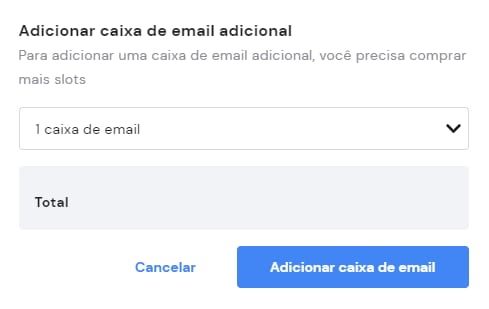 Uma janela será aberta e por ela você poderá comprar até cinco caixas de e-mail adicionais com apenas alguns cliques: