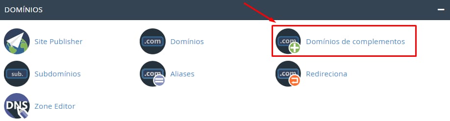 Se você estiver usando o tema Paper Lantern – seja ele básico ou outro, acesse sua conta cPanel e clique na seção Domínios de complementos: