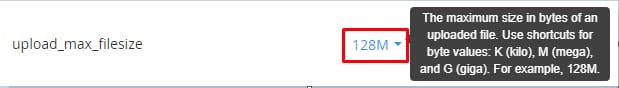 Em seguida, você pode selecionar Opções, onde você pode localizar upload_max_filesize e definir o valor máximo disponível em seu plano.