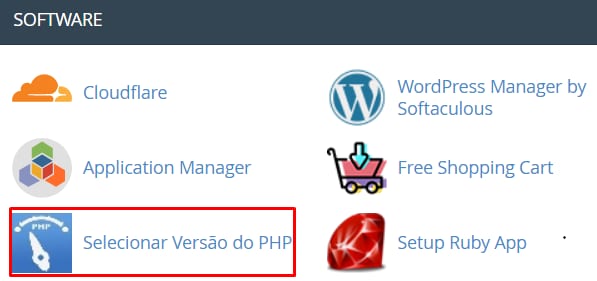 Para fazer isso, acesse seu cPanel → Seção de software → Selecionar a versão do PHP: