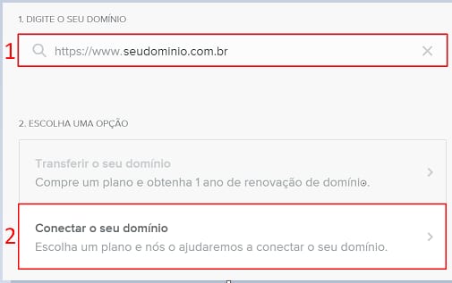 Digite seu nome de domínio mais uma vez e clique em Conectar seu domínio:
