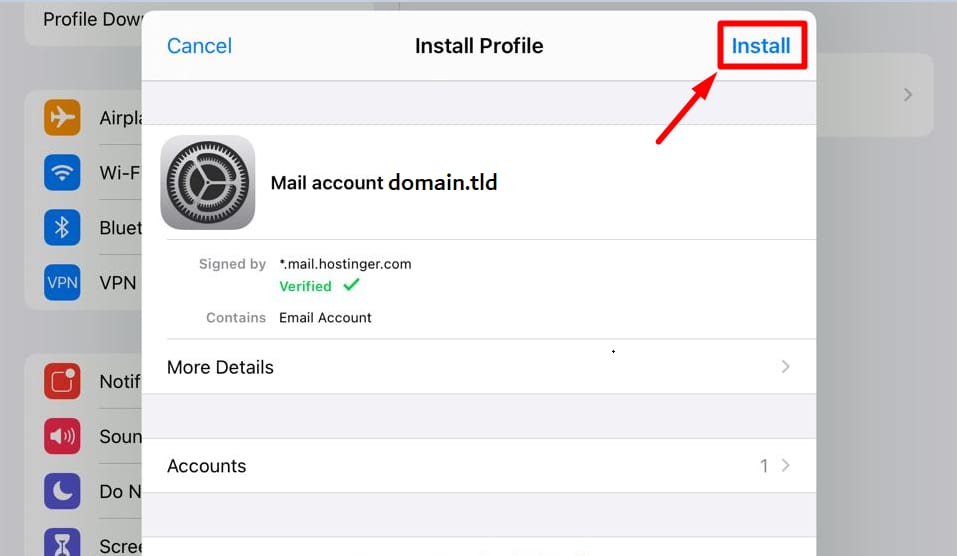 É provável que seu dispositivo peça que você aprove o perfil depois de baixá-lo. Basta clicar em confirmar.