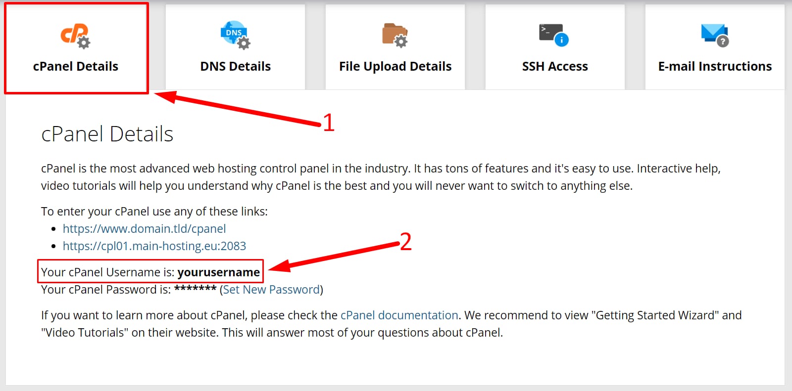 Você pode verificar o nome de usuário do cPanel a partir do hPanel ou cPanel diretamente.