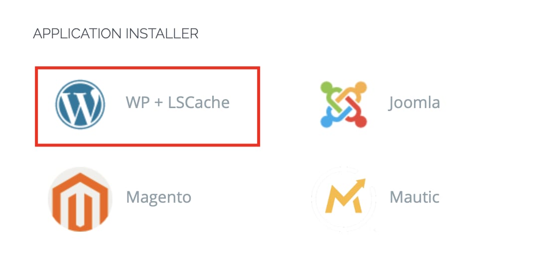 Role a página para baixo até localizar a seção do nosso aplicativo de instalação, o Application Installer. Ali, basta clicar em WP+LSCache: