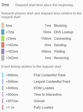 Ela é particularmente útil para desenvolvedores, já que mostra o comportamento do site quando o mesmo carrega. Cada elemento do site está indicado no gráfico principal, com o tempo exato que levou para carregar: