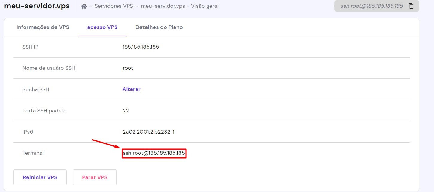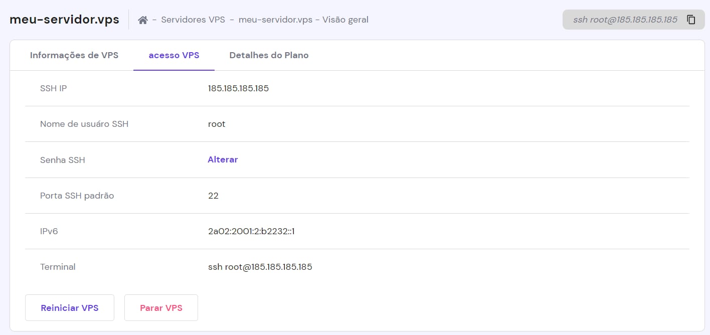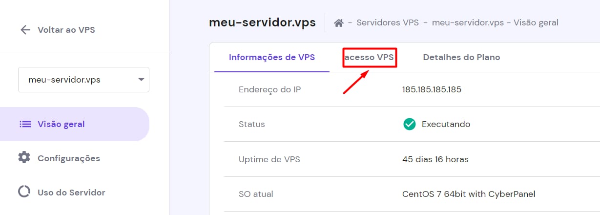 Para encontrar seus dados, vá até à seção VPS e escolha o servidor que deseja conectar: