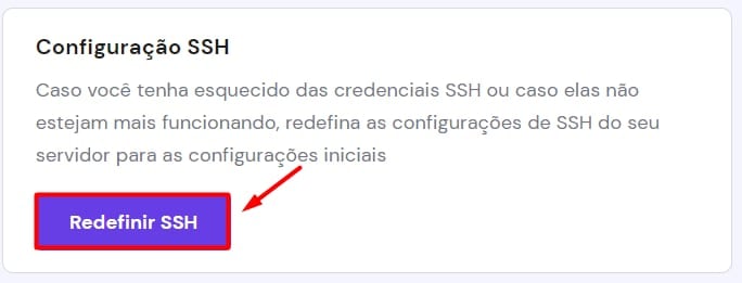 Se a conexão falhou, redefina o Firewall. Se isso não funcionar, redefina o SSH. Para redefinir o SSH, abra as Configurações no menu esquerdo, e na seção de configuração SSH, clique em Redefinir SSH: