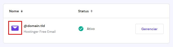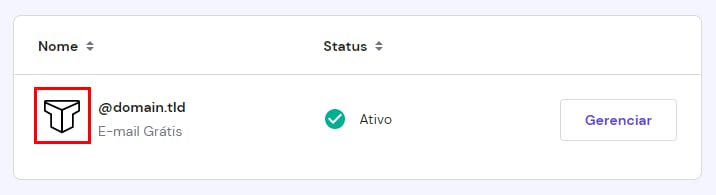 Depois, clique no ícone próximo ao seu nome de domínio. Se a sua seção de E-mails tiver essa aparência: