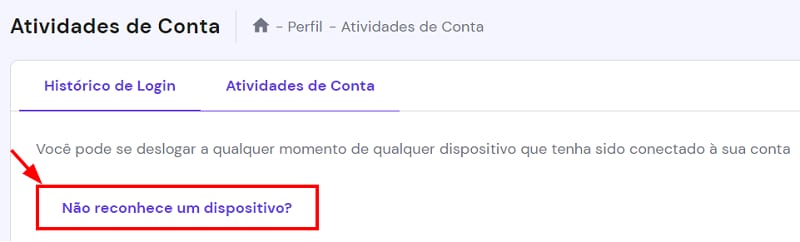 Caso não reconheça alguns logins anteriores, ou suspeite que alguém tenha acesso à sua conta sem autorização, você pode sair de todos os dispositivos e mudar a senha em apenas alguns cliques. Basta clicar no botão “Não reconhece um dispositivo?” no topo da página: