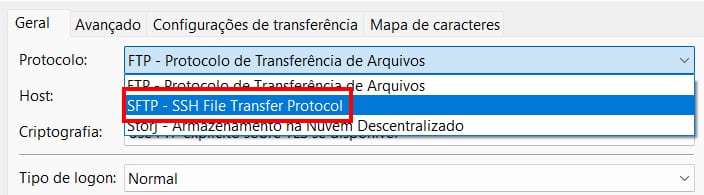 Selecione a conexão SFTP: