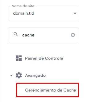 Depois, na barra lateral esquerda, encontre o Gerenciamento de Cache e clique nele: