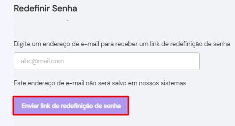 Adicione um endereço de e-mail e clique no link Enviar redefinição de senha: